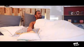 A sex infused pose with a shy and skinny blonde beauty on bed.