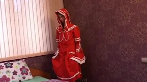 A young and beautiful cheerleader nurtures a thick dick in her uniform