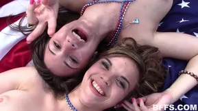 Melony and her girlfriend have fun with oral sex and exchange semen smiles