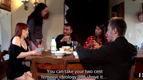 Sexy Asian woman participates in a lewd group activity gets semen all over her